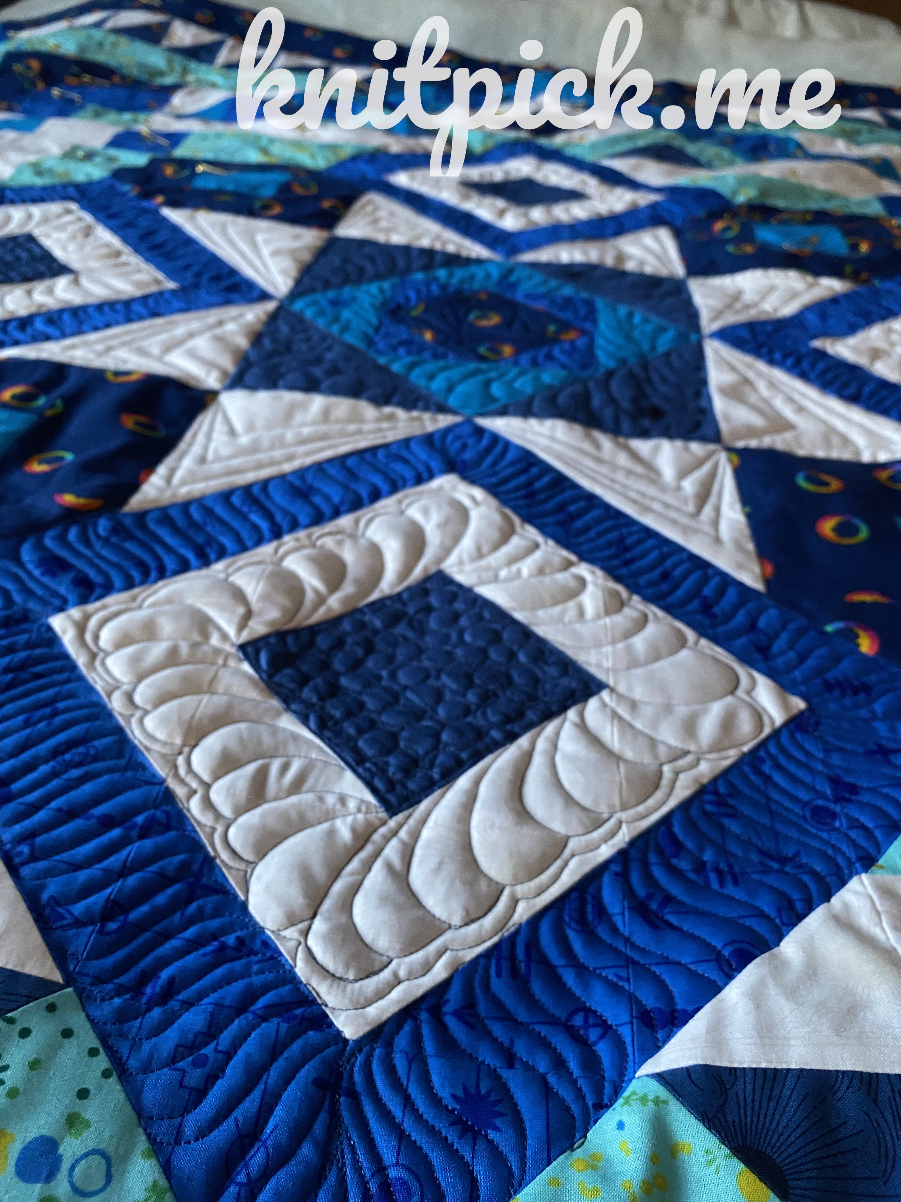 - Fraktal Quilt: This is a quilt I made for my mother. I haven't dared washing it yet, it is wool batting, but I am hoping it will be ok due to it being the same batting I used for a mystery quilt that has been washed a few times happily. I finished the quilting and binding July 19th, after having started this quilt back in 2020.