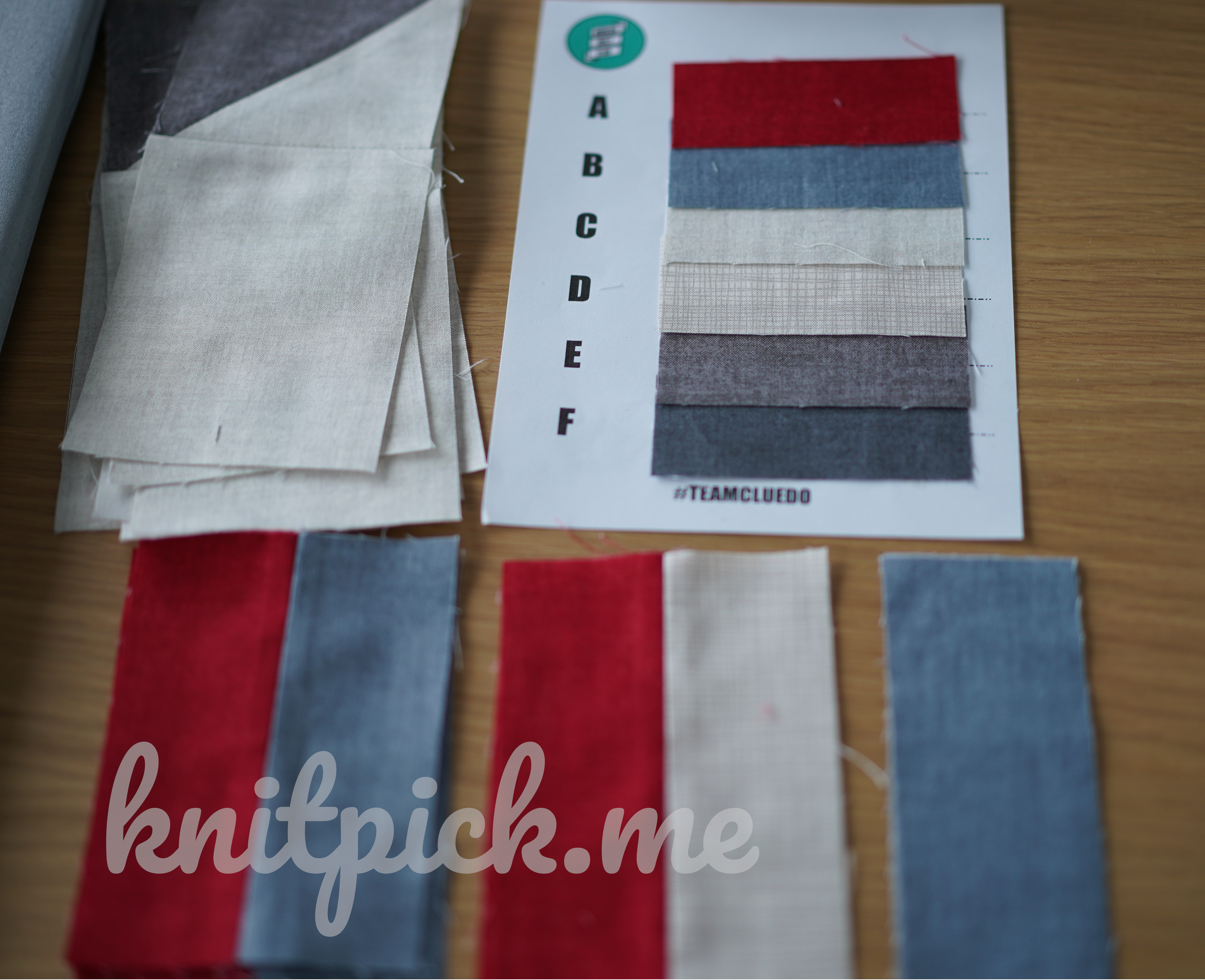 There were quite a few fabric combinations to choose from and after a lot of discussion at home about what would go better with our decor plans (since making this quilt will take about a year), we chose to join #teamcluedo. It is quite a neutral palette with some reds that make it really nice.