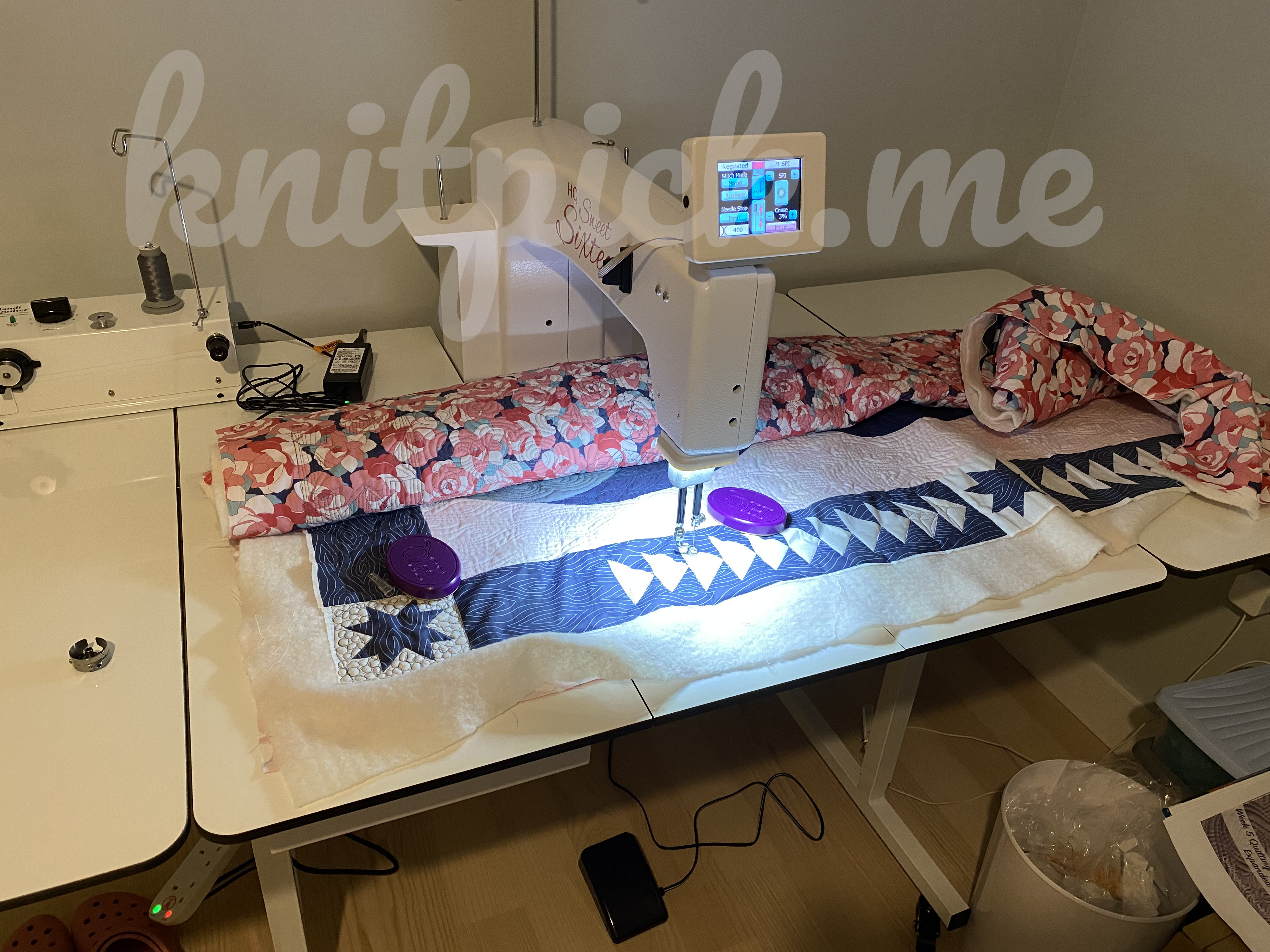 One of the things I noticed with my first quilt, which I quilted on my normal sewing machine, was the amount of wrestling and work I had to do to move it under the needle, over and over again until the quilting was done. At this point I decided that if I was going to do bigger quilts, I didn't want to have this issue forever, or I would end up sending my quilts for someone else to quilt them and just doing the piecing myself (this was so not the point of quilting being my hobby...).