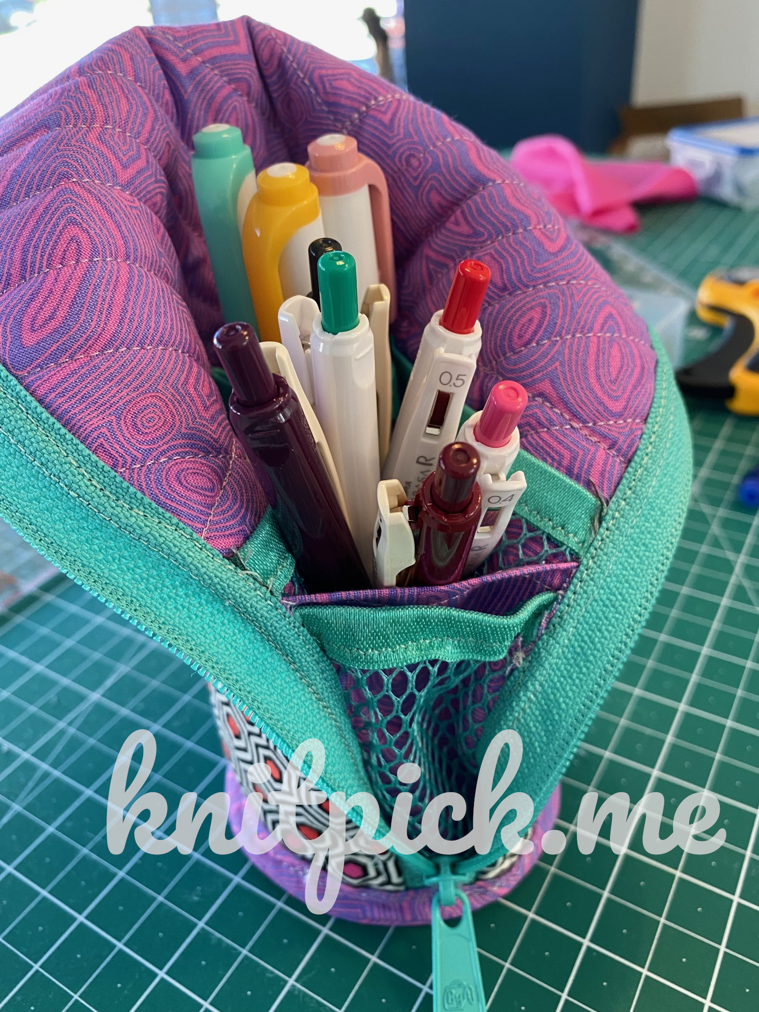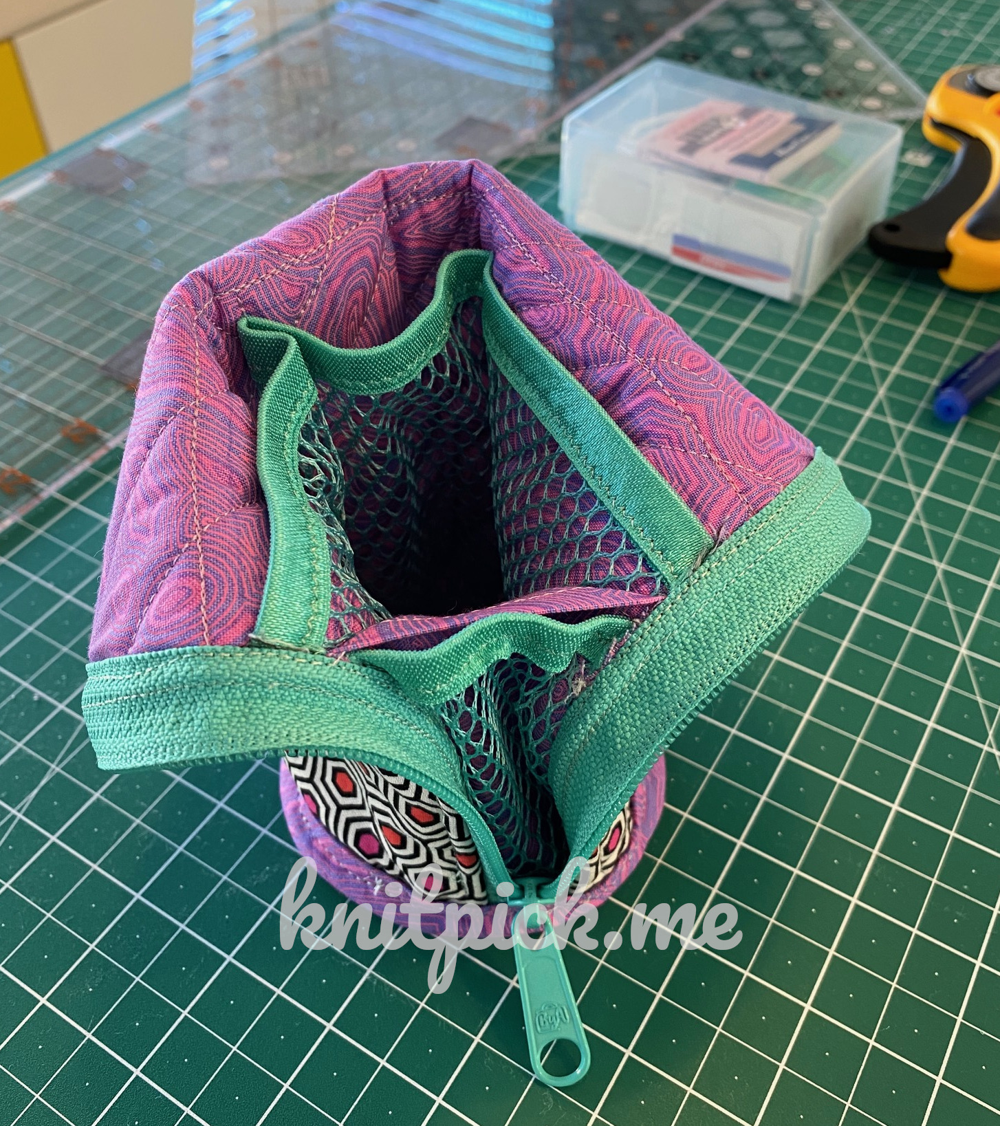 The finished zippered case closed and opened: